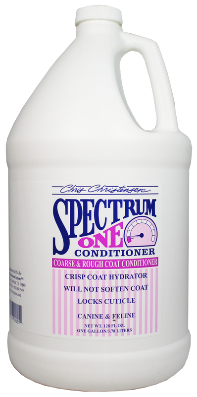 Repair damaged coat and maintain texture with Spectrum One Conditioner. Turn lifeless, flat coat into springy, manageable, full coats. Seal the cuticle without adding too much moisture. Cut drying time in half. CCPCSP1C