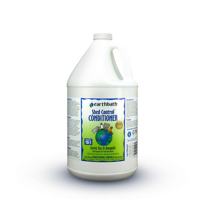 This vegetable-based formula softens, detangles, and enriches the coat while helping reduce shedding and dander. Organic fair-trade shea butter, glycerin, and allantoin deeply moisturize to relieve dryness and scaling, while antioxidants such as green tea leaf extract and omega-6 fatty acids help protect and repair the skin to minimize shedding triggers. The result is a silky, shiny coat that looks and feels healthier. Safe for all animals over 6 weeks and will not wash off topical flea applications. For best results, use with earthbath Shed Control Shampoo. EBPC1111